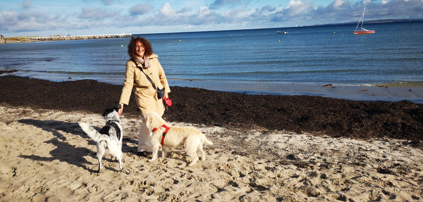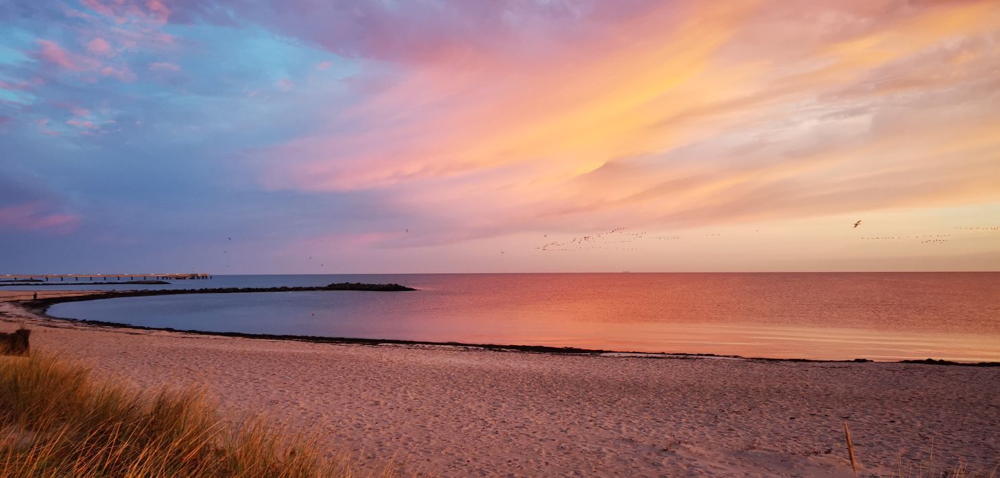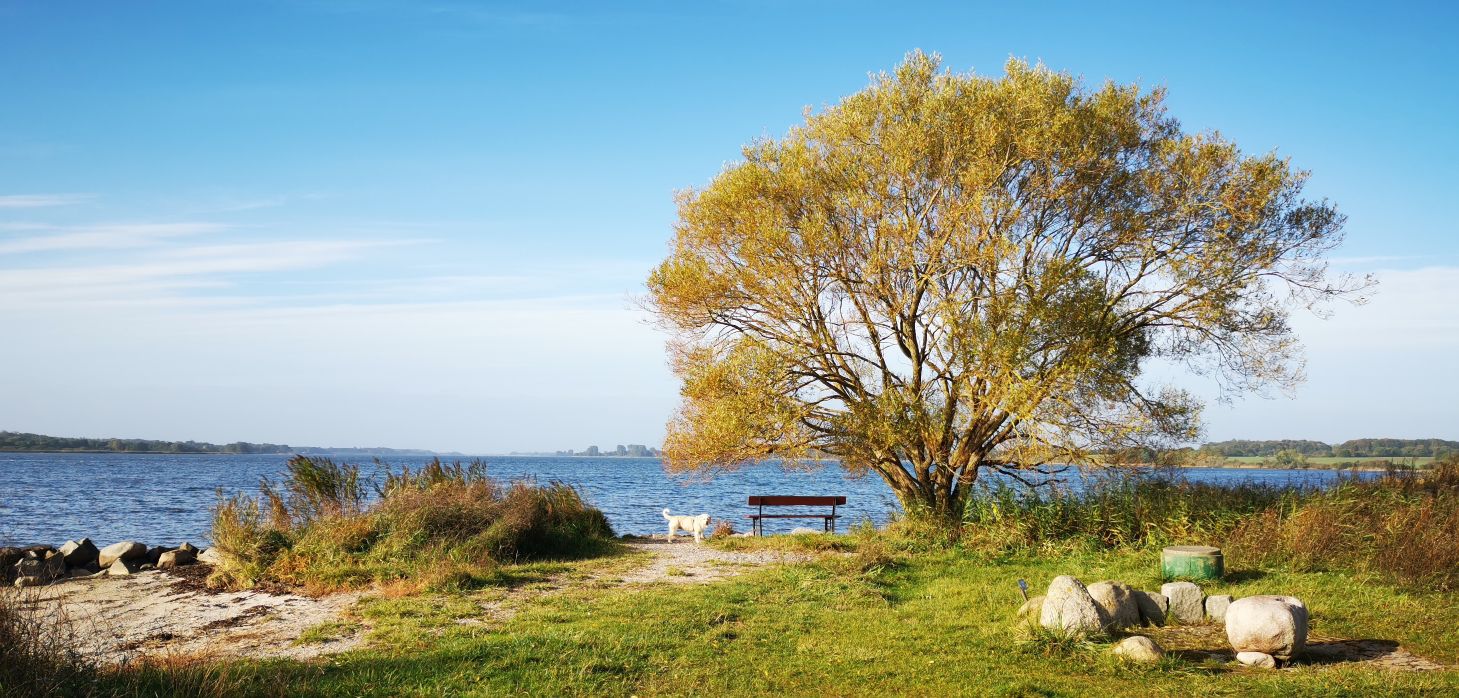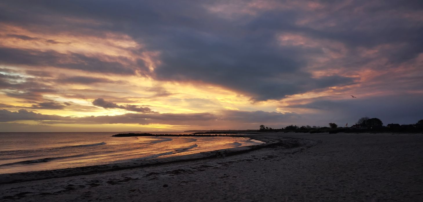 Anfang Oktober ging es wieder Richtung Norden, zunächst zu unserem Ferienhaus in Arnis, der kleinsten Stadt Deutschlands. Und Anis ist mit rund 300 Einwohnern wirklich winzig. Ursprünglich hatte ich nur 3 Wochen in Schönberger Strand geplant. Nachdem mich aber dieses Jahr meine Mama erstmals bei der Reise begleitet hat, wollte ich ihr auch zwei weitere schöne Ecken an der Ostsee zeigen. So nach dem Motto „wenn schon, denn schon“. Daher zuerst mal 1 Woche an die Schlei mit Ausflügen nach Sieseby, Eckernförde, Maasholm und natürlich zum Leuchtturm von Falshöft. Unser Kapitainshaus war sehr gemütlich und der große Garten bis zum Wasser war für Paula herrlich. Ein Fan von Fischbrötchen wird meine Mama nicht mehr, sie gehört zur Kuchenfraktion. Ich fand das Bismarkbrötchen beim Fischstand am Maasholmer Hafen wie immer köstlich. Und fand auch einen neuen Garten für unsere kommende Schleswig Holstein Reise. Anschließend verbrachten wir 3 Wochen in Schönberger Strand, einer kleinen Gemeinde gleich neben Brasilien und Kalifornien. Kein Schmäh, die beiden Orte heißen wirklich so und liegen südlich von Kiel. Der dortige kilometerlange Sandstrand wird von einem Fuß- und Radweg begleitet, dort fällt das lange Laufen leichter. Das war für meine zwei- und vierbeinige etwas ältere Begleitung ein großer Vorteil. Meine Wohnung bot einen tollen Ausblick, das sich ständig ändernde Licht hielt mich nicht nur einmal vom Arbeiten ab. Ausflüge nach Plön (Physio für Paula), Eutin, Lütjenburg, Hohwacht (und natürlich Essen im Klabautermann) ergänzten meinen Tagesrhythmus am Meer: ausgiebiger Morgenspaziergang (meist zum Sonnenaufgang), arbeiten, gemeinsam Essen, Strandspaziergang. Eine Freundin kam mit ihrem Hund auch für eine Woche und siehe da, Paula war plötzlich wieder ganz agil, spielfreudig und kam mir 5 Jahre jünger vor. Und last but not least fuhren wir dann noch eine Woche nach Ahrenshoop auf den Darss. Ich kenne die Gegend ja schon recht gut, meine Mama war von der Architektur und Lieblichkeit ganz begeistert. Und generell von der Freundlichkeit der Menschen überall.